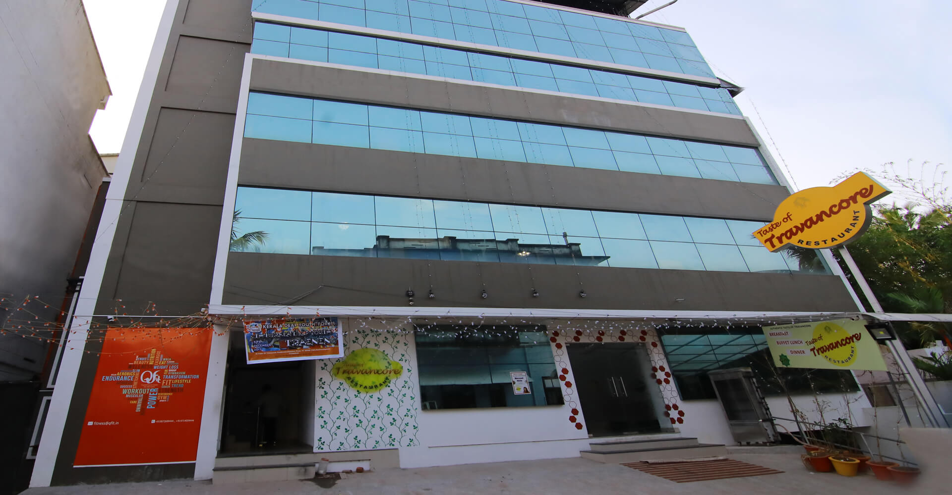 This five-story building suits to your nonresidential requirements. It is a commercial structure that overlooks the prestigious model road of the city connecting Sasthamangalam and Vellayambalam. Being a model road, its both banks assure hassle free parking of vehicles and safety for pedestrians. With a residential expanse on one end; and commercial spreads on the other end, the location of Hussain’s Plaza is well suited for all kinds of business activities to boom. (Ground + four floors) Exemplary spaces always turn into hubs of excellence. Hussain’s Plaza is not different. There is Taste of Travancore a reputed restaurant brand transforming a couple of floors here into foodies’ paradise. The remaining floors of the building are occupied by prominent brand, QFit Transformation Studio where fitness is not mere business but an art of acquiring healthy life.